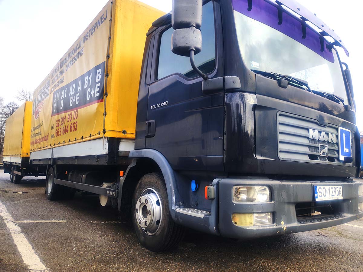 Auto szkoleniowe to MAN TGL z przyczepą typu TANDEM