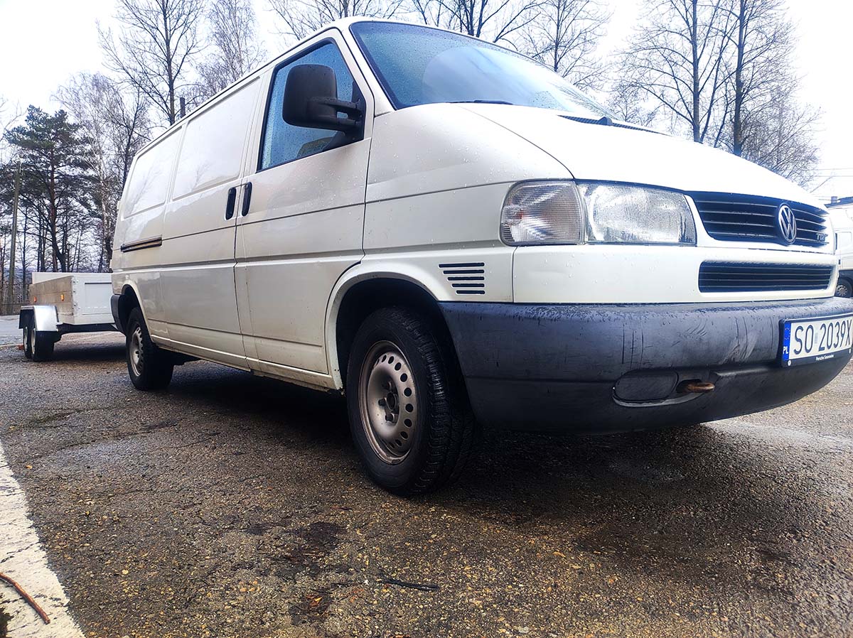 Auto szkoleniowe to VOLKSWAGEN Transporter wraz z przyczepą dwuosiową.