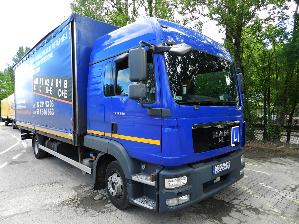 Auto szkoleniowe to MAN TGL z przyczepą typu TANDEM